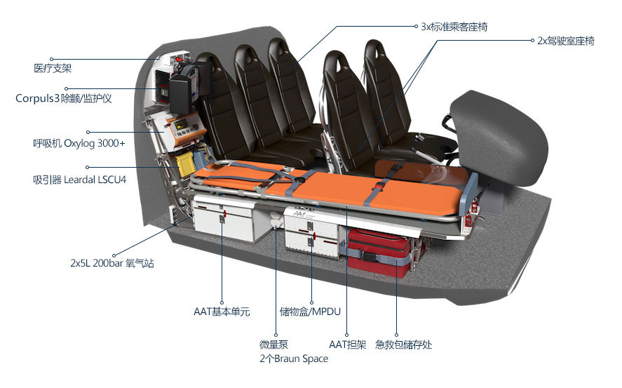空客H125/H130/H135直升机不单是简单的运输工具,机上配备了专业呼吸机、除颤仪、注射泵、氧气站等全套的医疗救援设备,相当于空中的ICU。