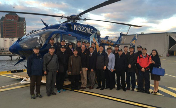 2015年10月30日, 九九九空中救护邀请由山东省急救中心18人组成的山东省急救中心代表团,参观了Stat Medevac公司的巴尔的摩基地和美国马里兰州警察航空指挥中心。