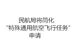 自4月1日起,民航局将简化“特殊通用航空飞行任务”申请材料报送要求,把11项申请材料简化为2项、上百页的重复性各类资质证明简化为2页的“申请函+承诺书”,以提高政府办事效率、减少企业运营成本。
