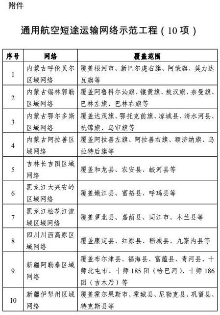 附件:1、通用航空短途运输网络示范工程(10项)