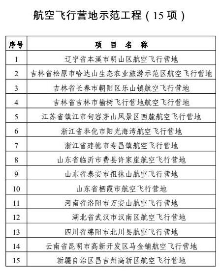3、航空飞行营地示范工程(15 项)